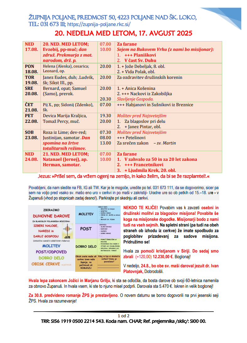 Oznanila 17. 8. 2025
