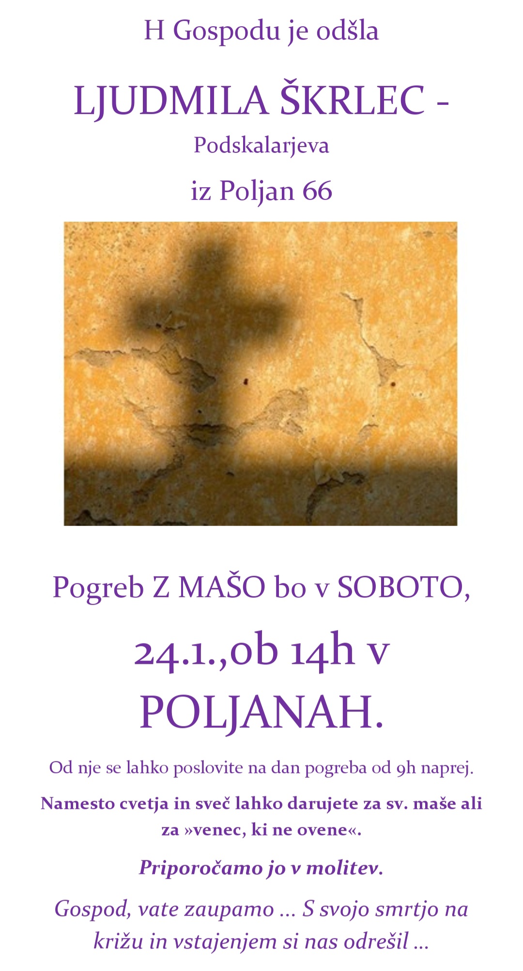 Osmrtnica + Ljudmila Škrlec