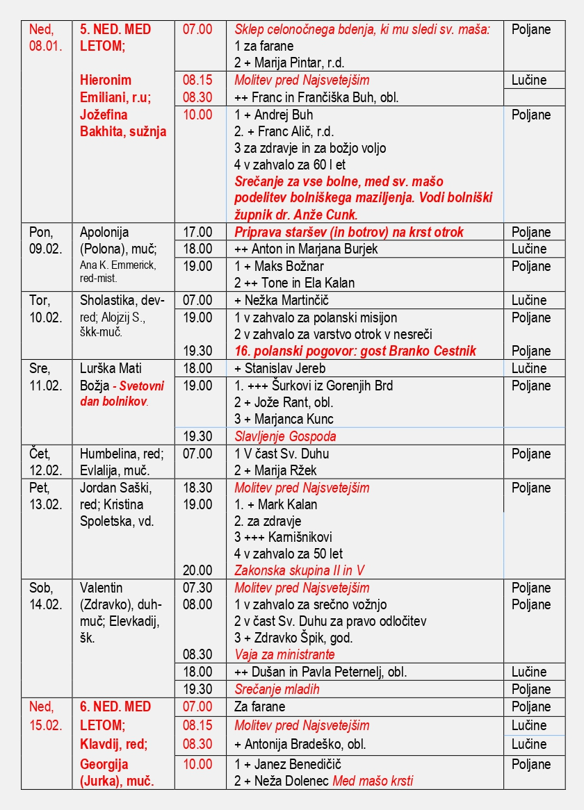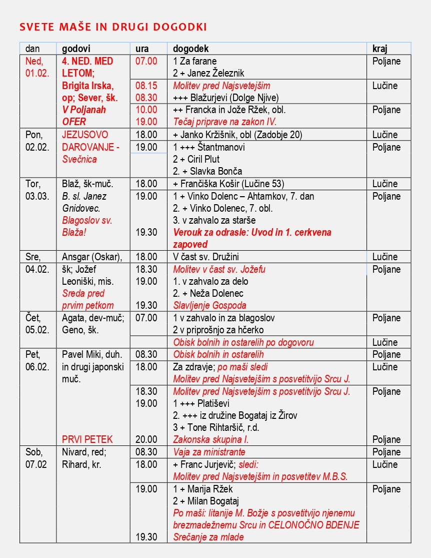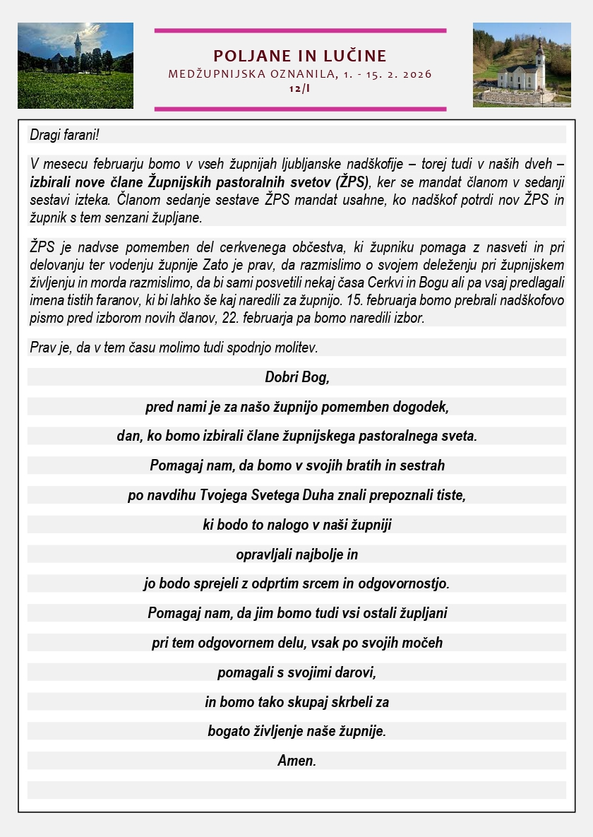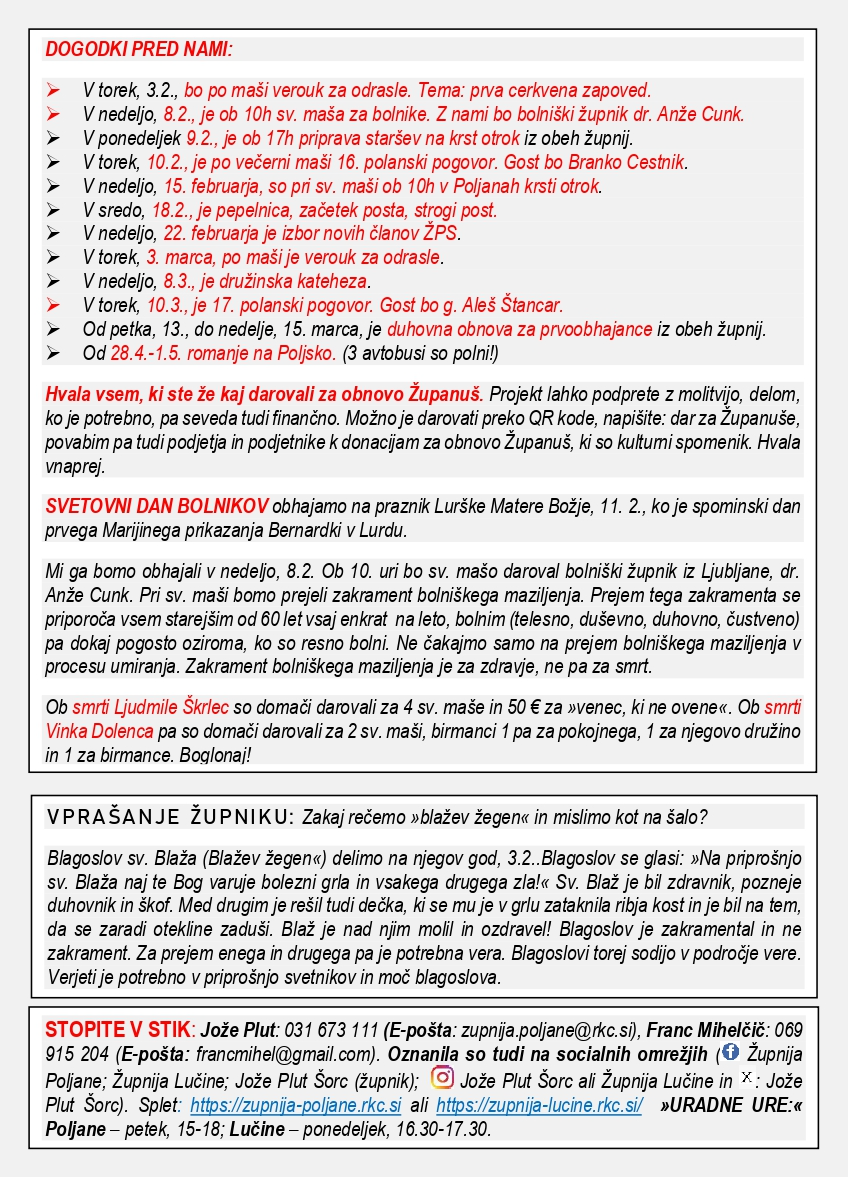 Oznanila 1. – 15. 2. 2026