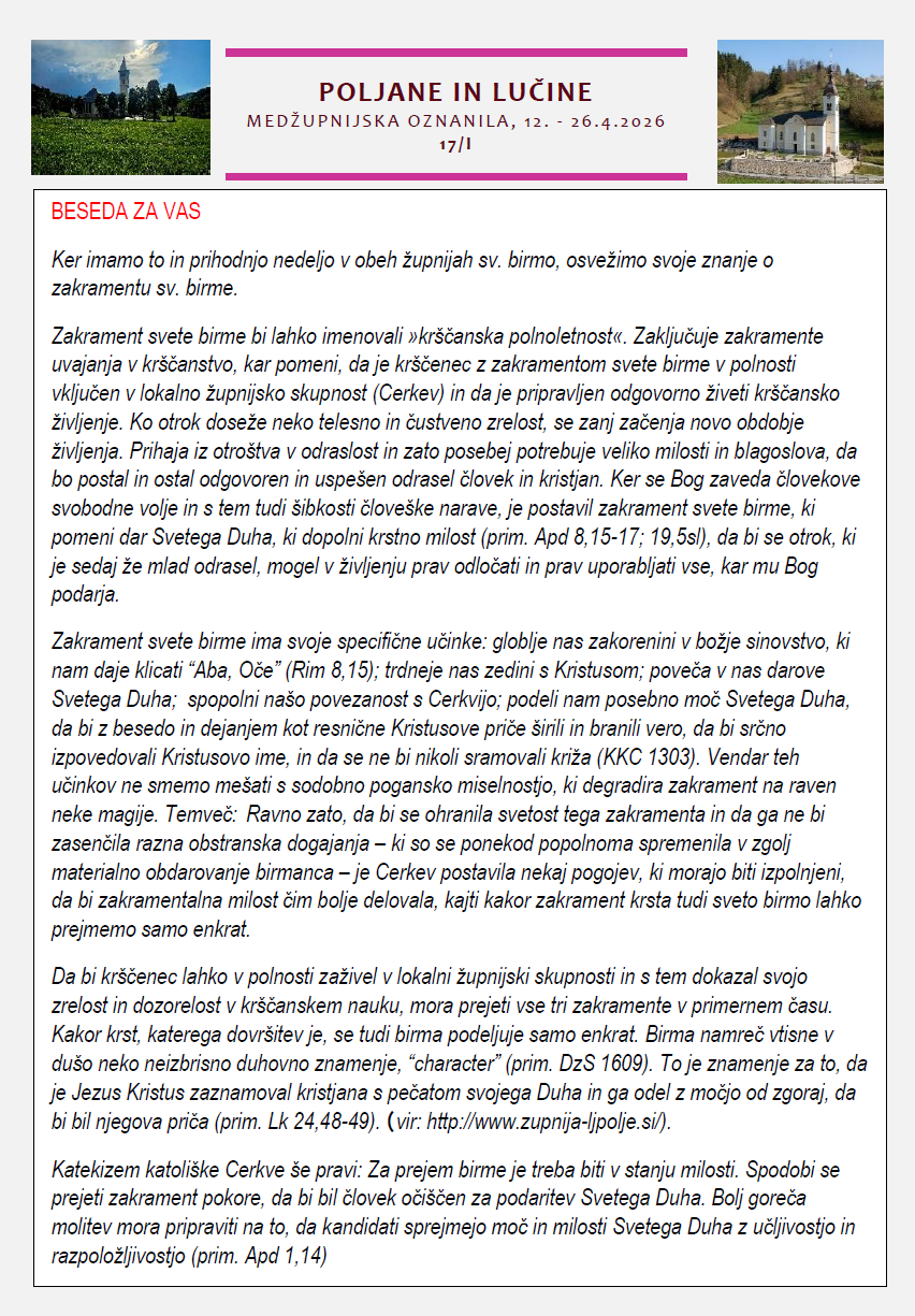 Oznanila 12. – 26. 4. 2026