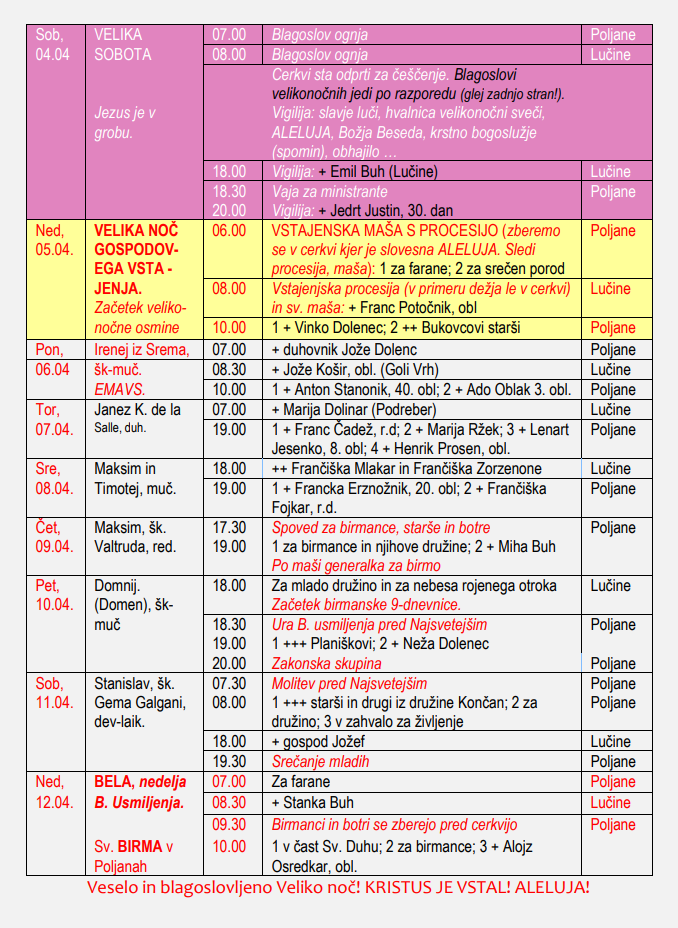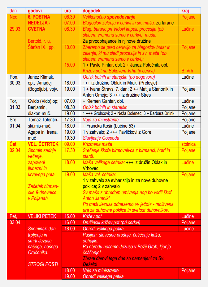 Oznanila 29. 3. – 12. 4. 2026